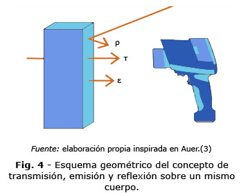 Donde son los coeficientes de emisión, reflexión o transmisión, o simplemente emisividad, reflectancia y transmitancia, las cuales son propiedades del material, como se observa en la figura 4.