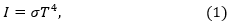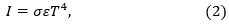 Donde, es la temperatura del cuerpo (en K), I, la Intensidad de la radiación emitida por el cuerpo (en W/m2) y σ, la constante de Stefan-Boltzmann (5,67 x 10-8 W/m2K4).