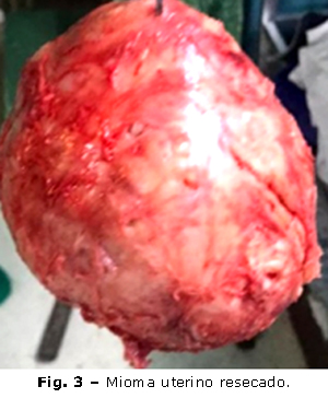 Al comprobar la disminución del tamaño del fibroma se realizó una miomectomía por vía abdominal. Se logró extraer exitosamente la totalidad del fibroma, sin comprometer la integridad del útero (Fig. 3). La recuperación posquirúrgica transcurrió con normalidad.