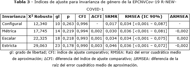 de invarianza muestra que la EPCNVCov-19 puede ser utilizada en individuos de