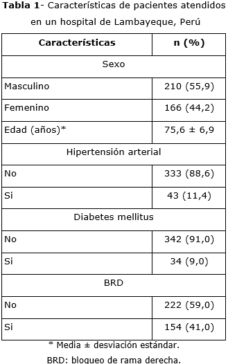 Resultados: De 376 pacientes, la mayoría eran varones (55,9 %), la edad media fue de