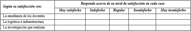 satisfecho respecto a la infraestructura e investigación universitaria,