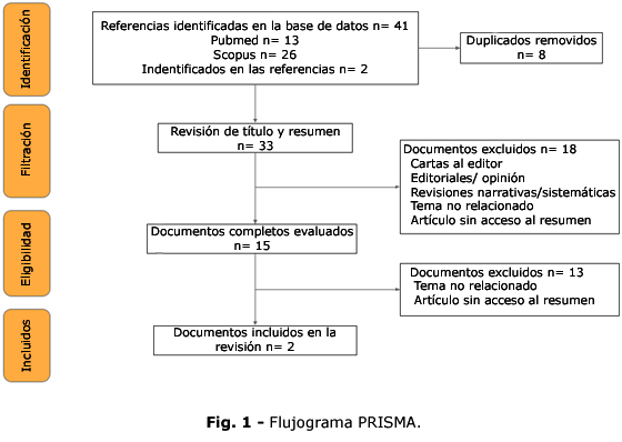De 39 documentos encontrados en la búsqueda se incluyen 2 artículos: Un ensayo clínico y un reporte de caso, con una población total de 41 pacientes (Fig. 1). Las características generales de los documentos se encuentran en la tabla 2.