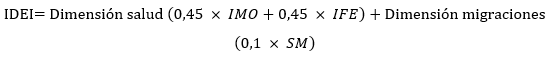 Por último, el índice demográfico integral (IDEI) se obtiene a través de 2 dimensiones, mediante la expresión de cálculo siguiente: