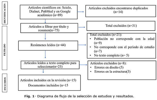 Inicialmente, se identificaron 89 documentos relacionados con el tema, de los cuales 15 se seleccionaron por la calidad de la información que contenían. Para garantizar los resultados se utilizaron otros estudios como fundamento.