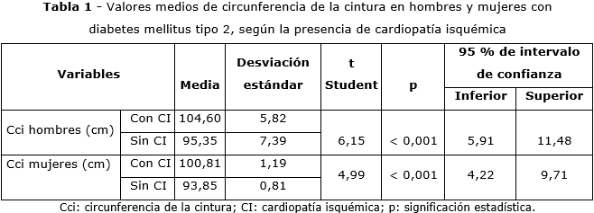 Palabras clave: circunferencia de la cintura; cardiopatía isquémica; diabetes mellitus tipo 2.